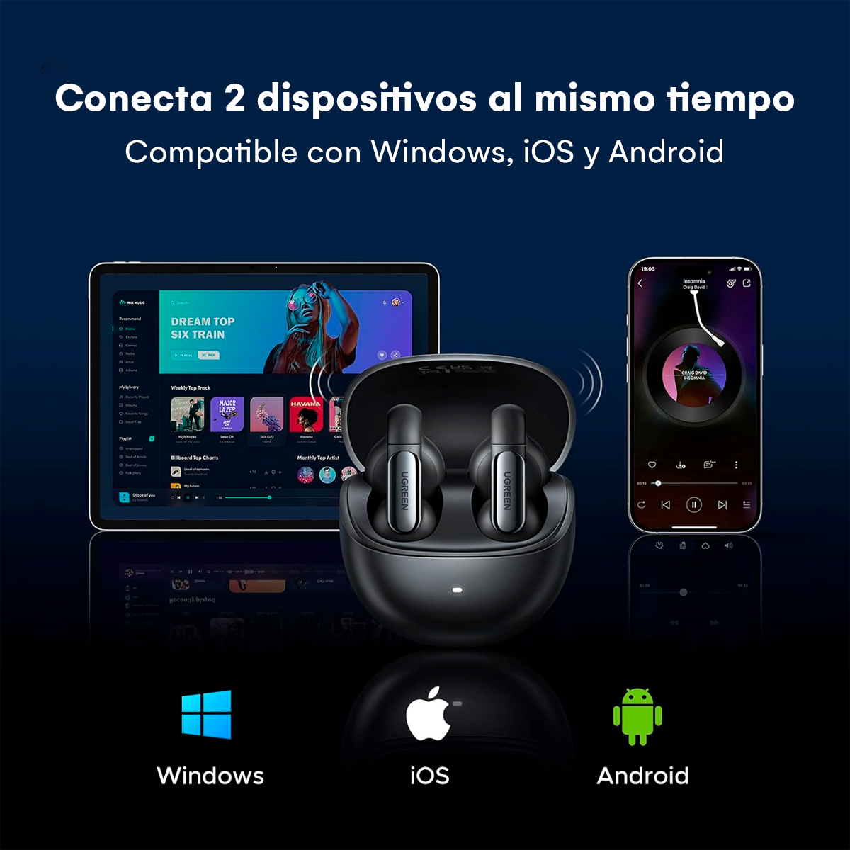Gracias a su Bluetooth 5.4, ofrecen una conexión inmediata, estable y con bajo consumo de energía. Además, son compatibles con los códecs AAC y SBC para garantizar un audio limpio en cualquier dispositivo Android o iPhone.