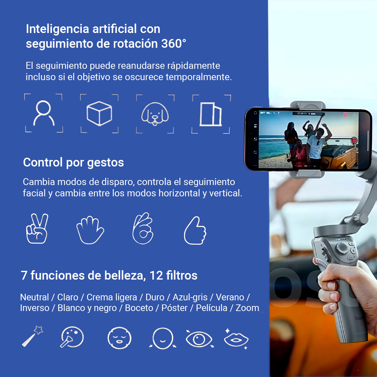 Estabilizador Gimbal Hoco Cardán Premium 3 Ejes Gestos IA Tracking Estabilizador Gimbal Hoco Cardán Premium 3 Ejes Gestos IA Tracking