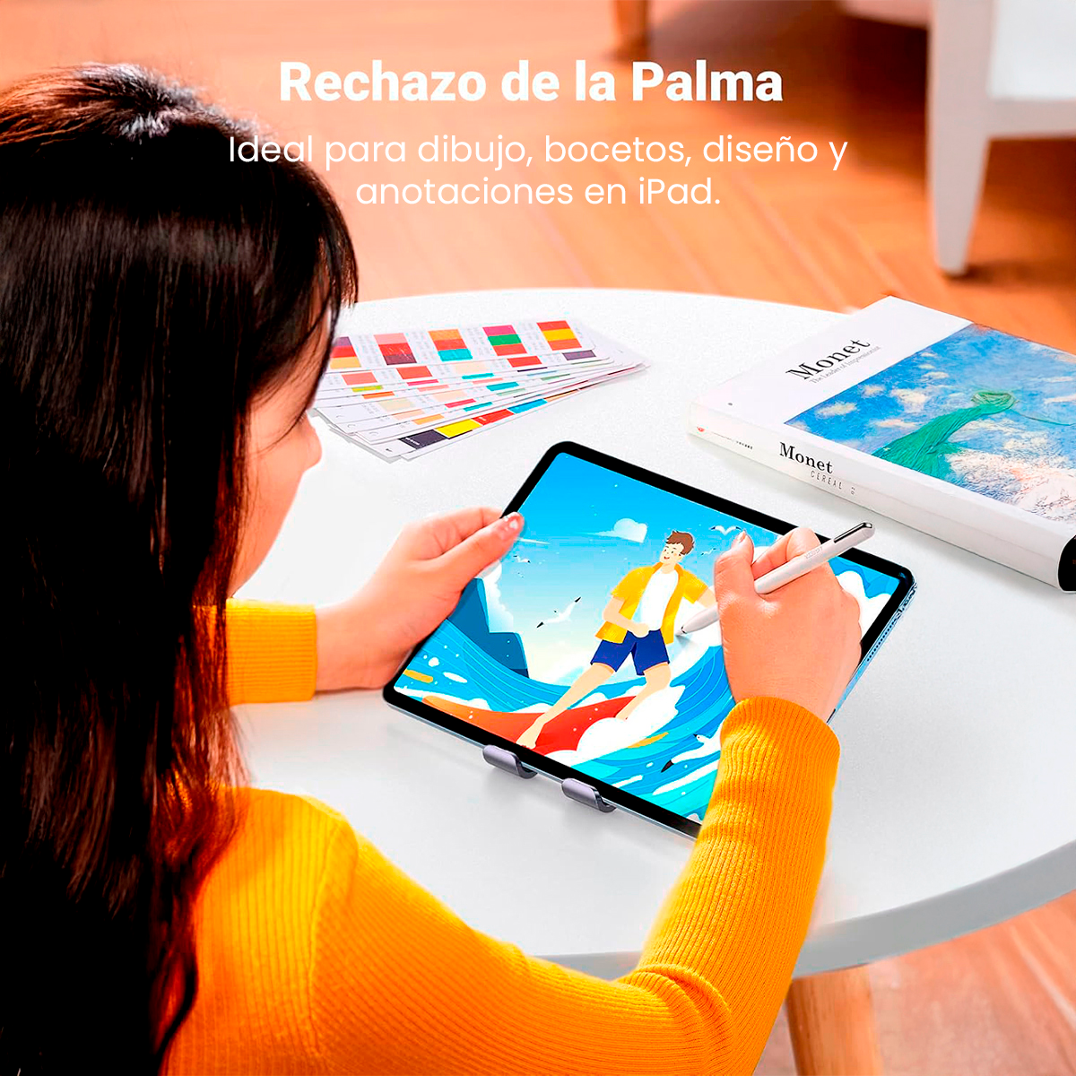 Ligero y cómodo, cuenta con clip magnético que permite sujetarlo al iPad o a fundas compatibles, evitando pérdidas y facilitando su transporte. Su diseño elegante y minimalista es perfecto para sesiones largas de trabajo o estudio.