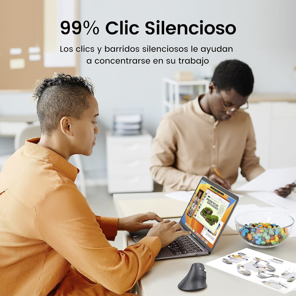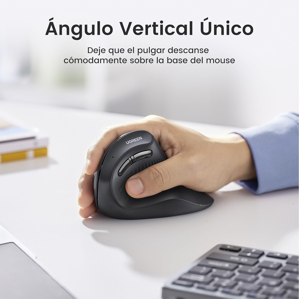 Diseño ergonómico vertical: El mouse Ugreen Bluetooth ergonómico MU008 está diseñado para mantener la muñeca en una posición natural, reduciendo la tensión y previniendo molestias durante largas sesiones de uso.