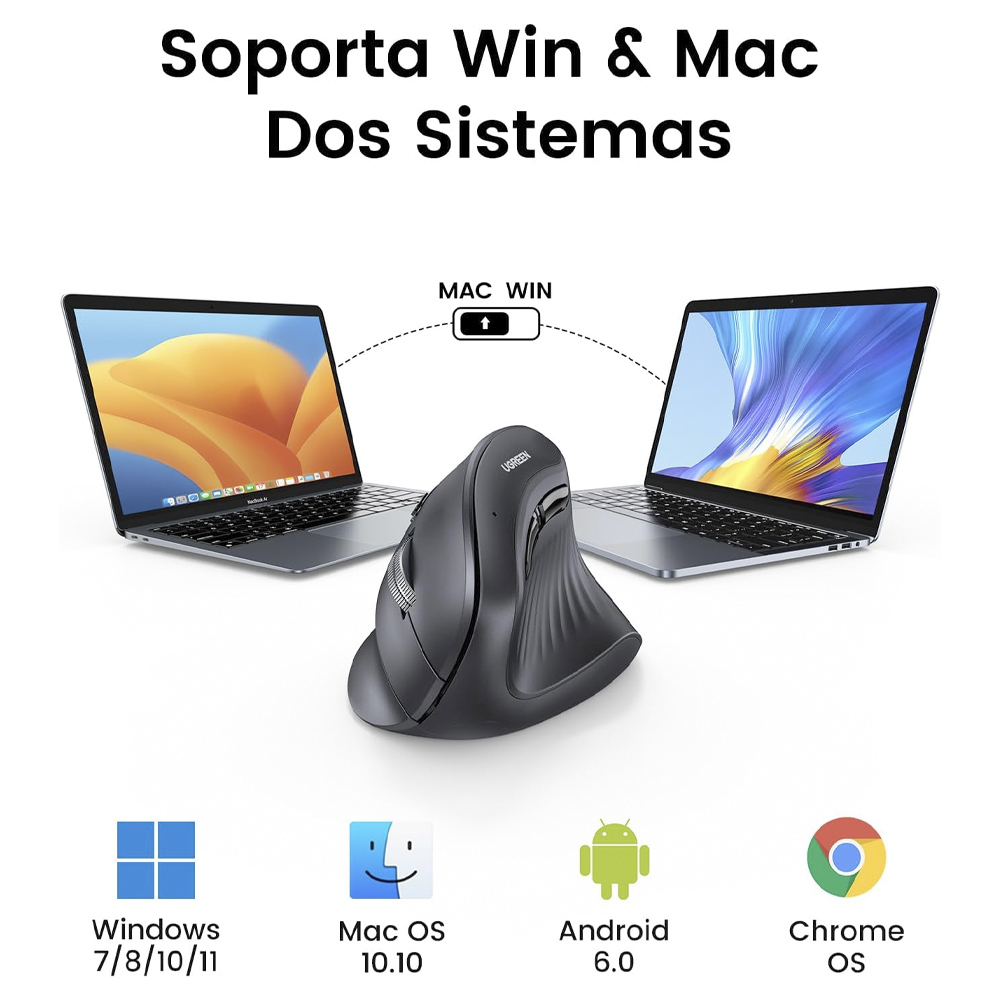 Mouse Bluetooth Ugreen Vertical Ergonómico Silencioso 2.4ghz