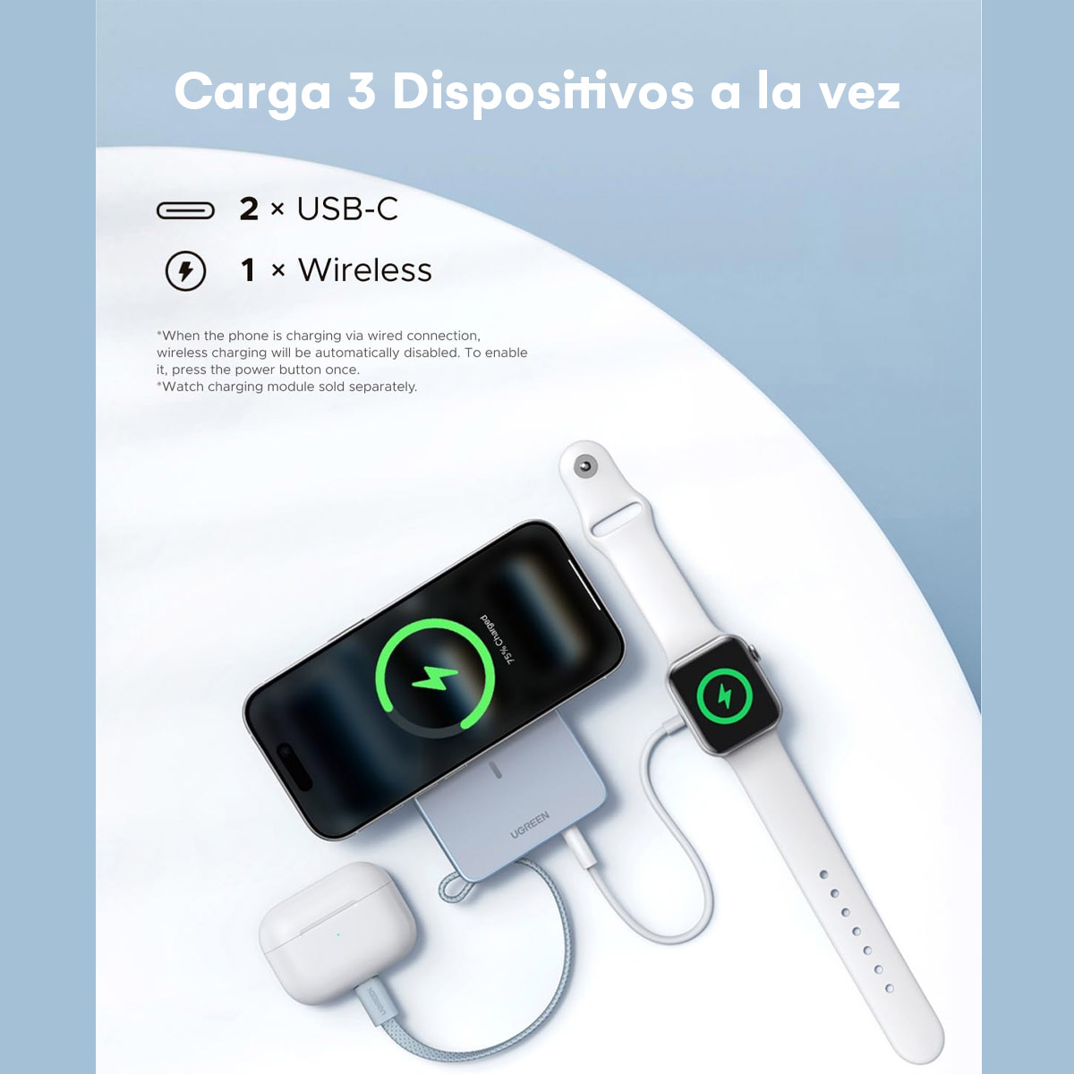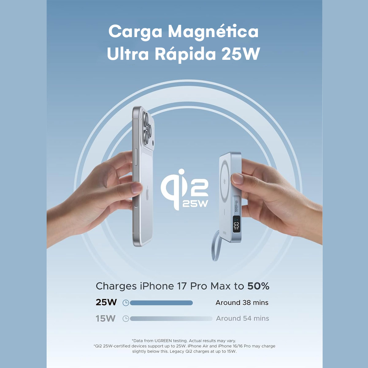 Power Bank Magnetico Ugreen 10000 Mah Qi2.2 25w Tipo C 30w Celeste Claro