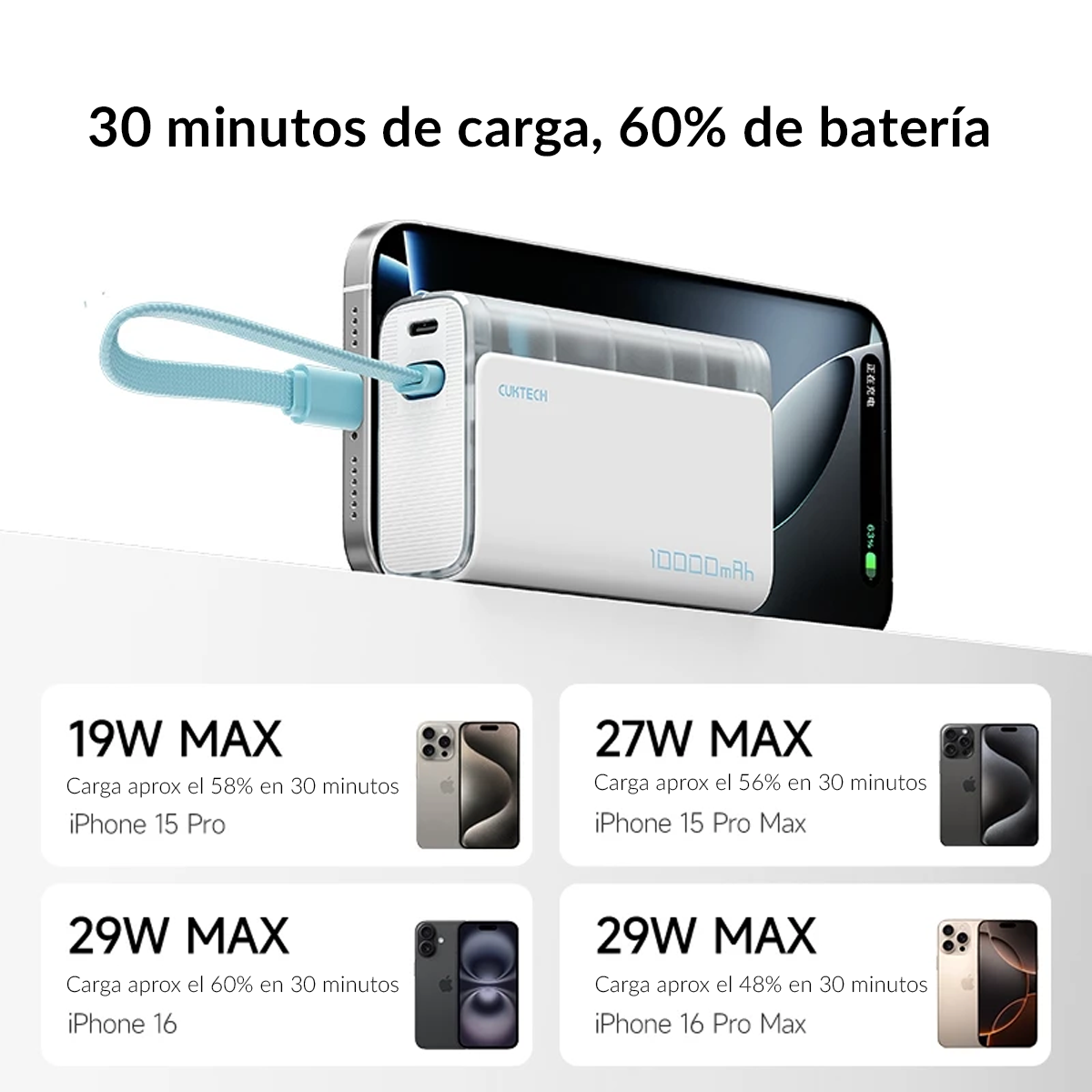 | Nota | Capaz de cargar un iPhone 16 Pro Max aprox. 1.4 veces |