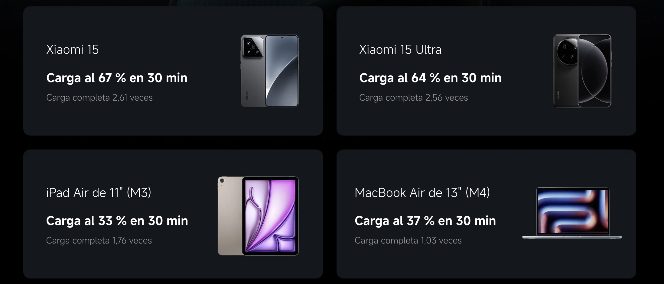 La Xiaomi 67W Power Bank 20000 ofrece hasta 67 W reales por USB-C, potencia suficiente para: