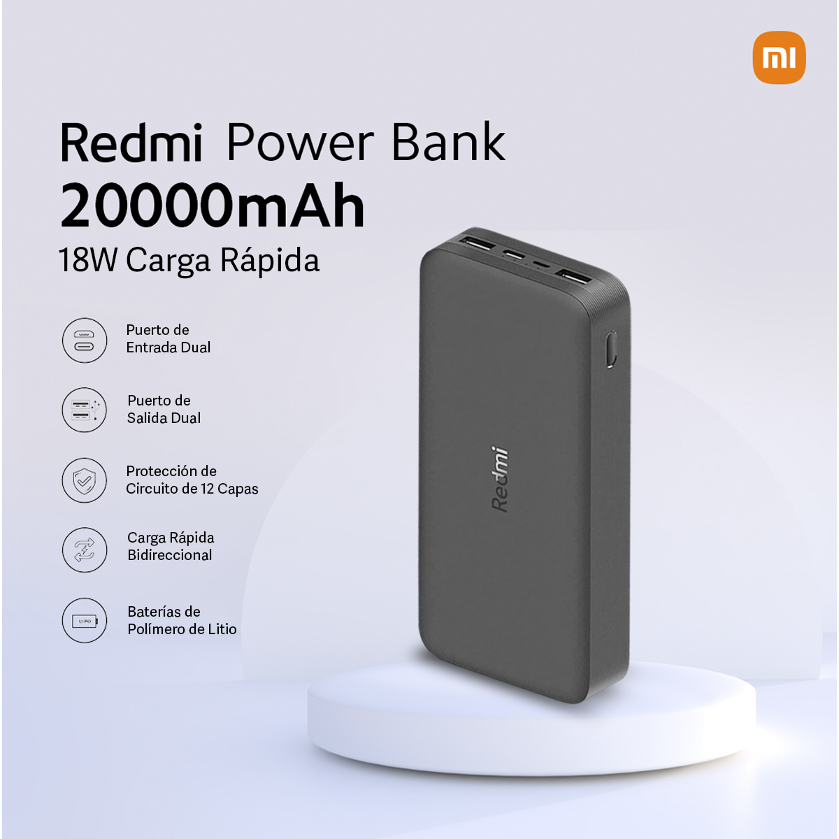 El Xiaomi Redmi Power Bank de 20,000 mAh y 18W es una excelente opción para quienes buscan una carga rápida y eficiente en sus dispositivos móviles. Con la capacidad de cargar hasta dos dispositivos simultáneamente, su diseño compacto y liviano lo hace ideal para viajes.