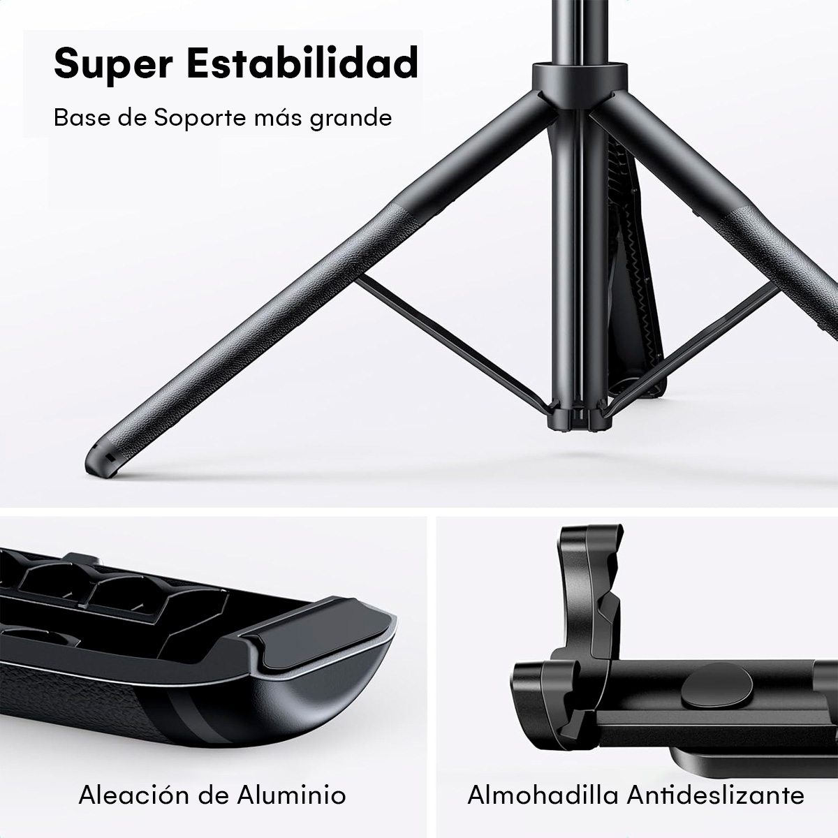 Con el nuevo trípode doble mejorado y la almohadilla de silicona antideslizante en la parte inferior, ya no tendrás que preocuparte de que el trípode se vuelque cuando hagas fotos en directo o veas vídeos.