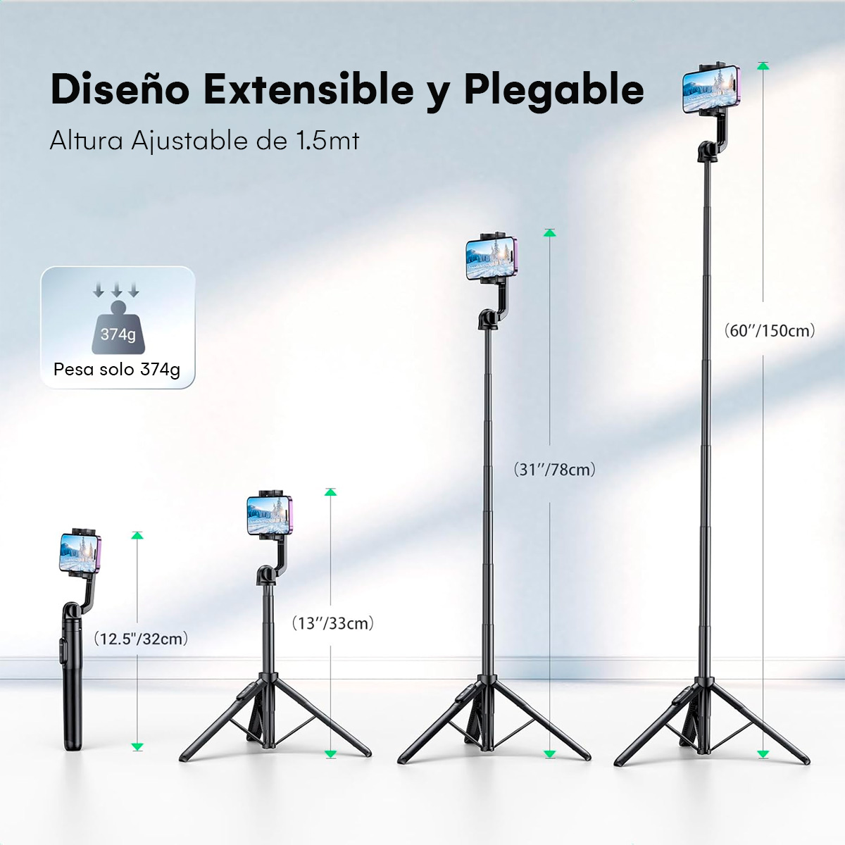 El UGREEN LP586 es un soporte 2 en 1 extensible (hasta 1.5 m), se transforma de palo selfie a trípode y cuenta con control remoto Bluetooth, para móviles de forma versátil.